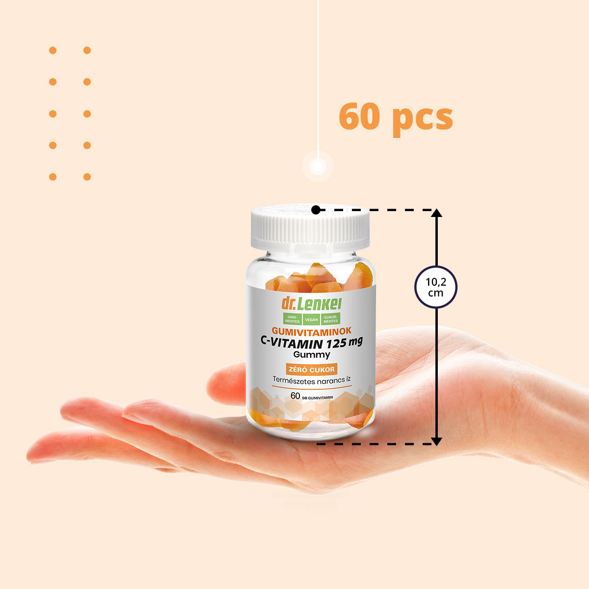 Dr. Lenkei C-125 (vitamin C 125 mg) Gummy, orange-flavored food supplement gummy vitamin with sweeteners